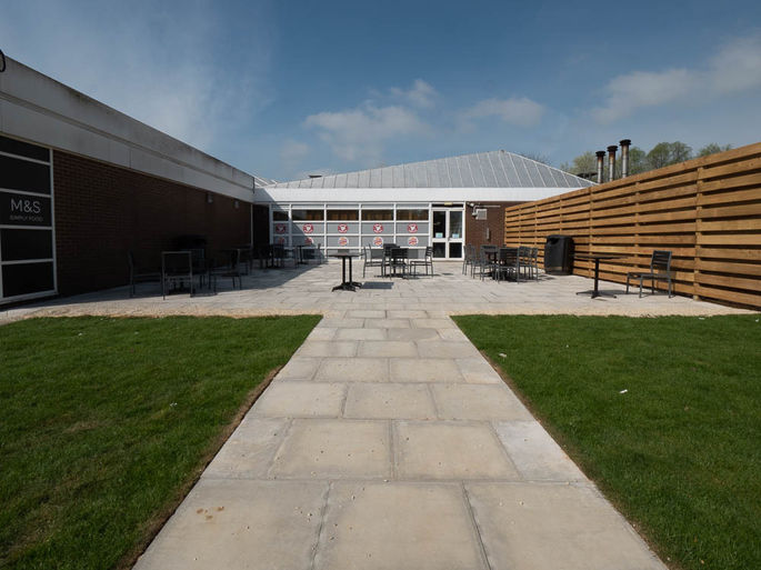 GP74 requested that we utilised the area outside Burger King by creating a new patio area with seating for customers to be able to sit outside and enjoy their food at Moto Leigh Delamere in Chippenham